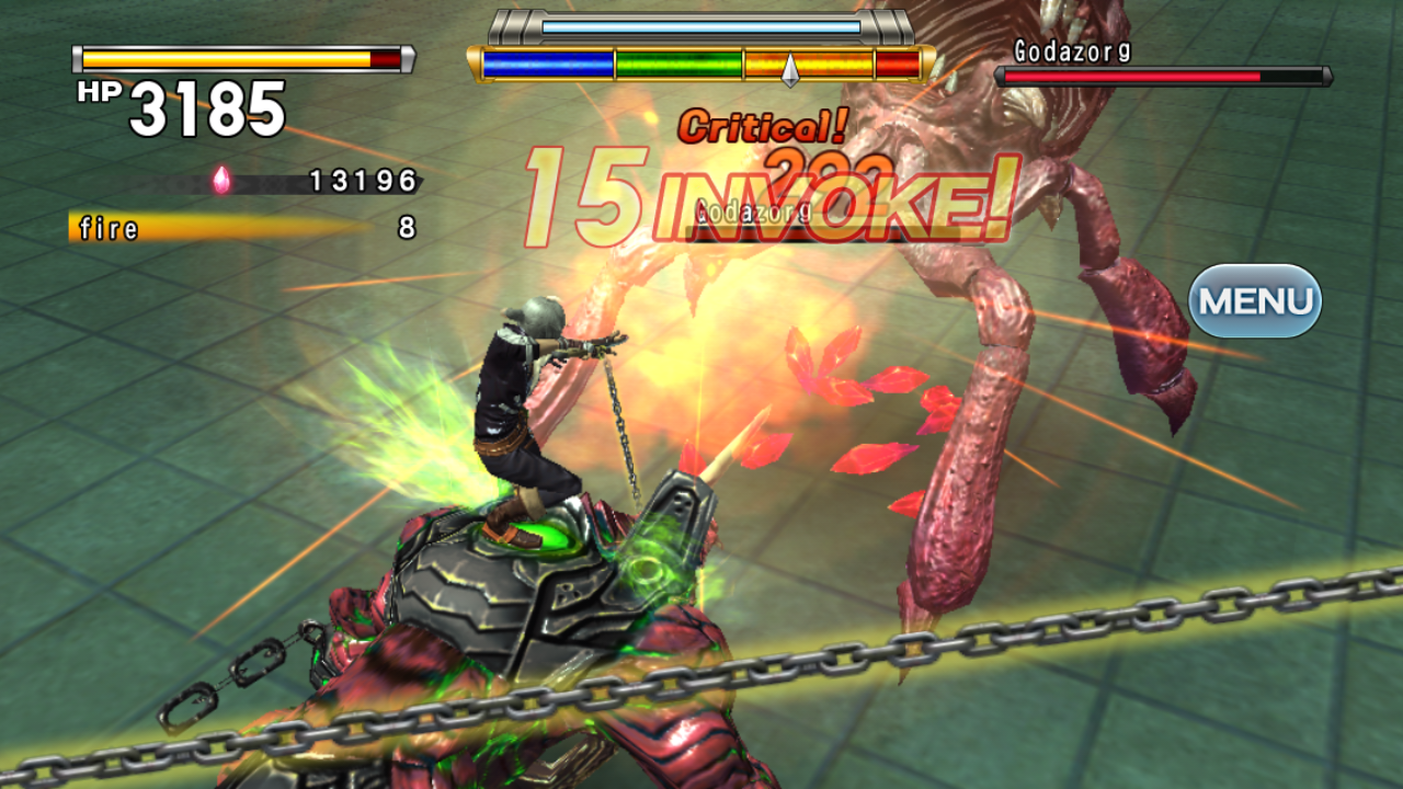Tighten or loosen your grip on the reins by sliding the chains at the bottom of the screen. The gauge at the top of the screen represents its tension. Ease off to unleash powerful attacks and abilities, but give your dragon too much freedom and you will lose control. If you're not quick to pull back the reins, he will turn against you.